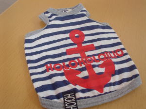 | タンクトップ・・1 1〜 ¥4095 コットン100% ホワイトとネイビーの手書き風ボーダー地の上に、赤でイカリとHOLOHOLO ILIOのロゴをあしらいました☆さわやかでかわいらしいマリン風の一枚 |