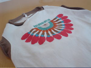 | ぐらんじTシャツ・・1 1〜 ¥4935〜 コットン100% ネイティブアメリカンのモチーフの羽根のプリントです。カラフルでかっこよく、街でもアウトドアでもマッチすること間違いなし! |