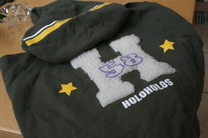 | フード・・・1 1〜 ¥7245〜 コットン100% スタジアムジャンバーのデザインです。大きなHの部分はボアになっています! |