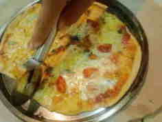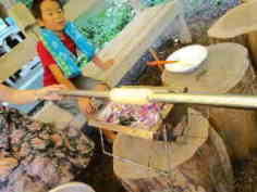 息子達が手こねした生地を、手延棒で丸く延ばしてトッピング。