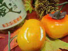 秋のひやおろしコーナーに飾ってある模造品の柿が・・・ アララ!