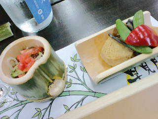 お料理は、手造りの青竹の器に盛る演出が施されています。
