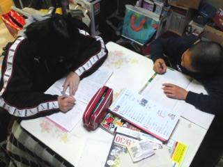 夜になっても宿題していやがる!