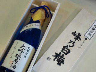 豪華な木箱に入った新潟の峰乃白梅大吟醸です。