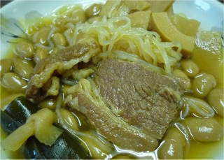 この江戸ッ子煮は、大豆・筍・白滝・牛肉・昆布の