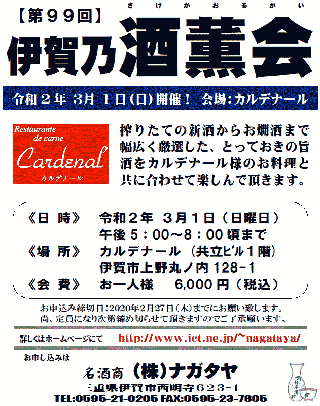 次回開催の第99回伊賀乃酒薫会のご案内です。