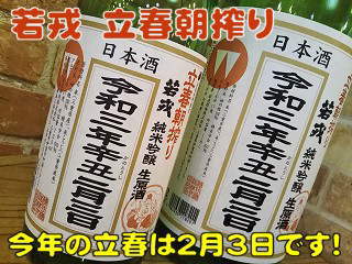 2月3日は水曜日ですが今年は「立春朝搾り」の