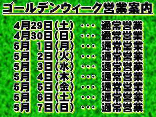 ゴールデンウィーク期間中は休まず営業致します。