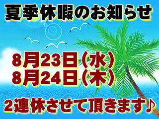 明日の8月23日(水)と24日(木)と夏季休暇で