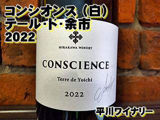 コンシオンス(白) 2022 テール・ド・余市 750ml…¥4,400(税込) 熟したパイナップルやパパイヤ、花梨の香りで 厚みのある旨味と、酸に伸びが感じられます。 柑橘系の酸や秘めたスモーキーさが調和します |
