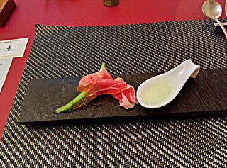 | @ スペイン産生ハム24ケ月熟成の ハモンセラーノとメロンのスープ ![]() |
