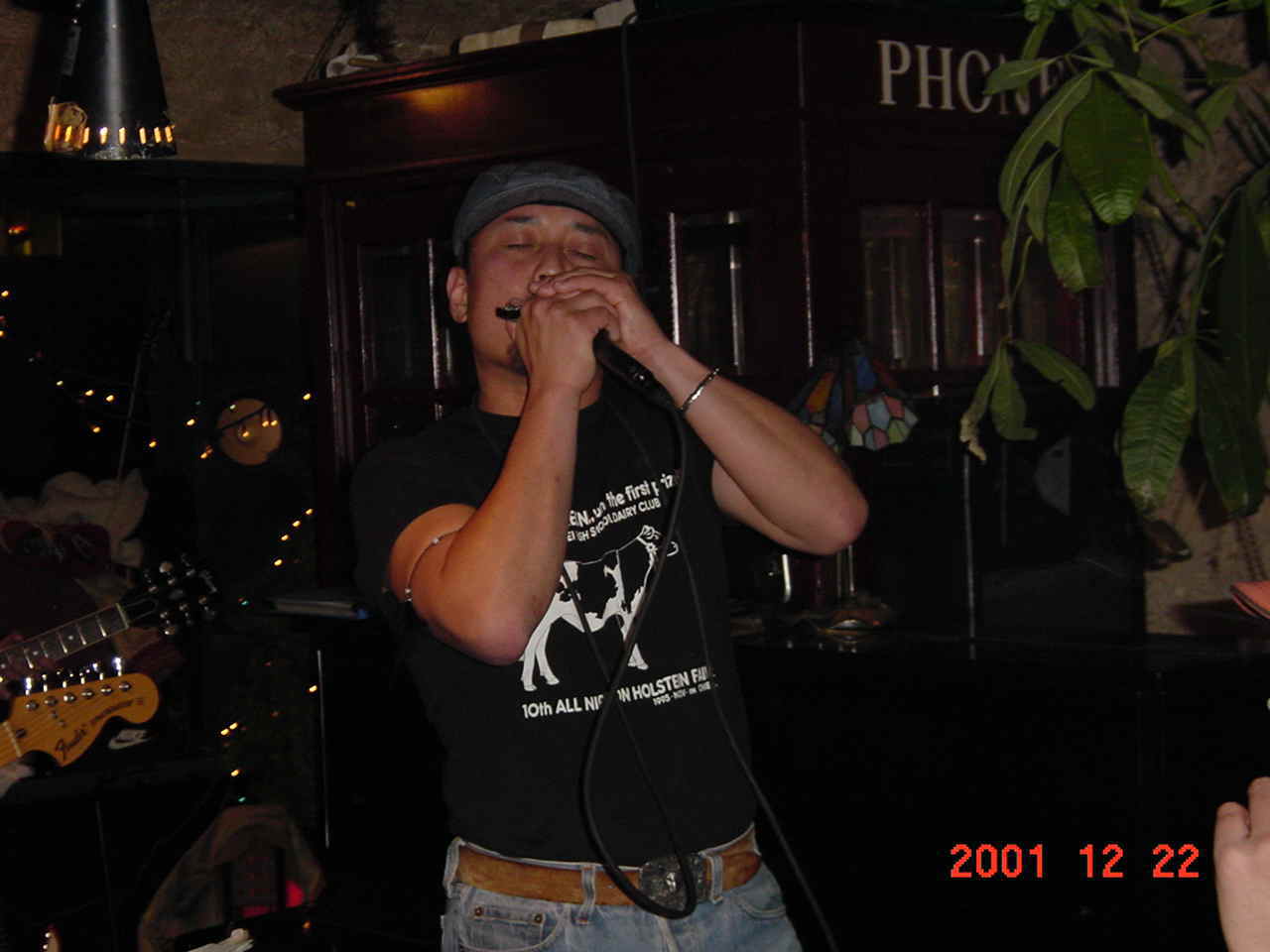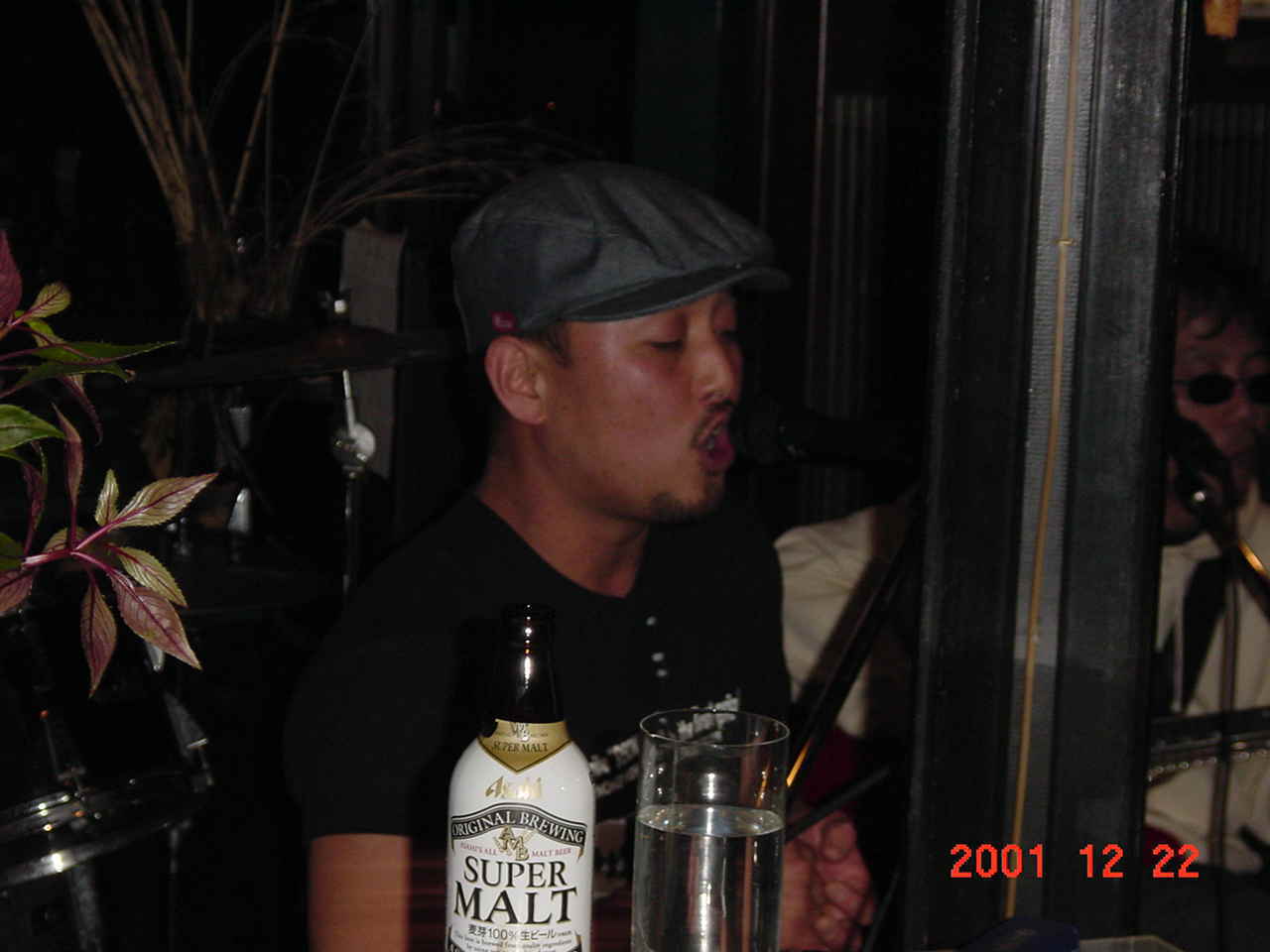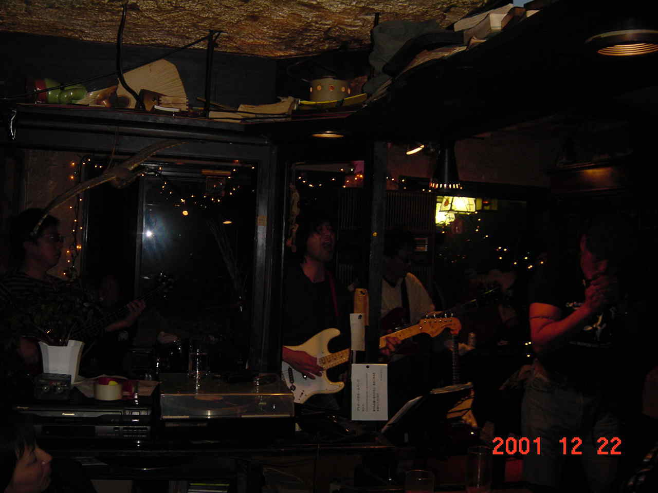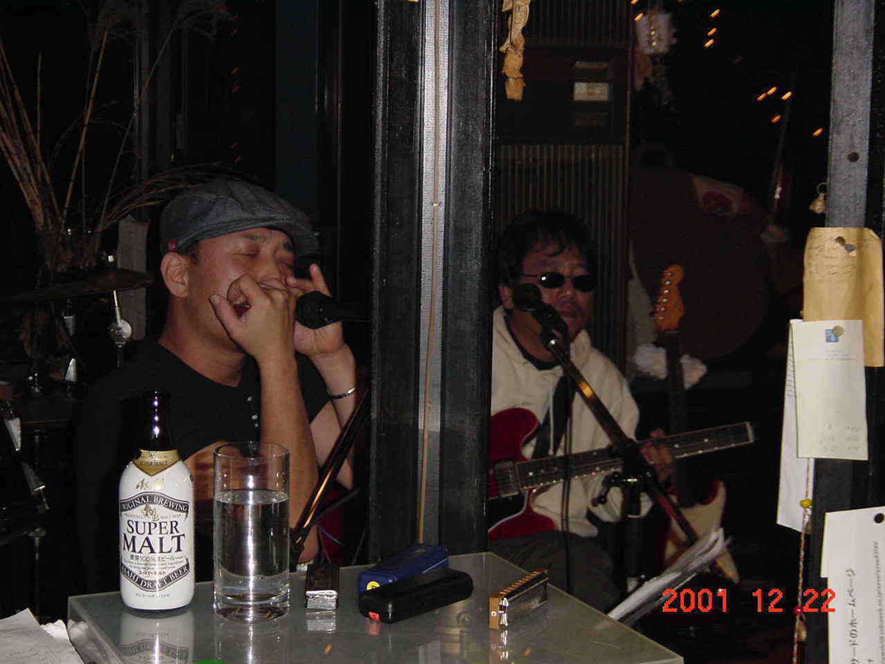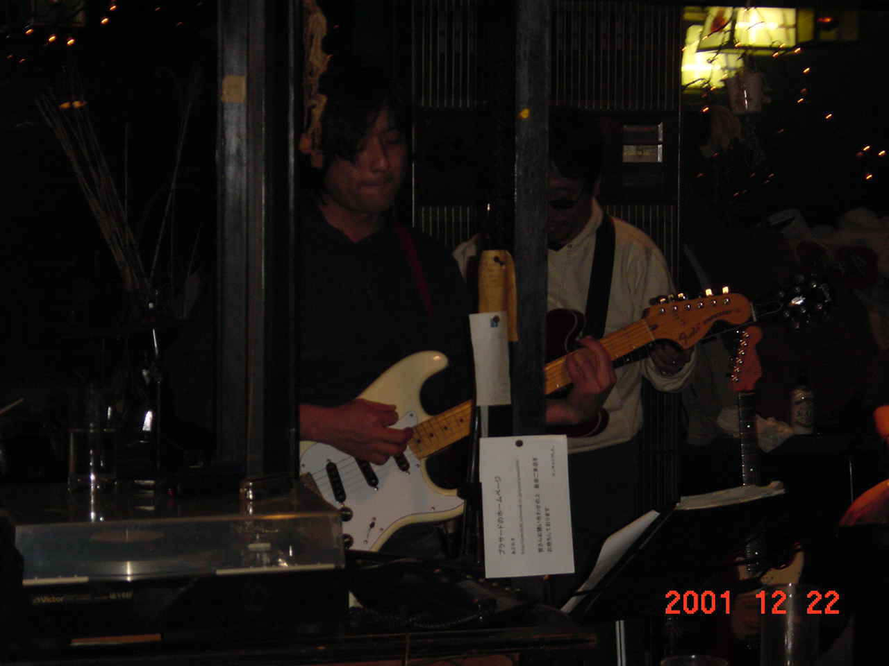 2001 12/22 JAZZプラサード パラダイス・レビューブルーズバンド VO・G:吉増浩志 VO・G:久保勝啓 B:近藤泰善 DR:森内(貞子)秀樹 HA:モクモク金正(ゲストハープ) 1SET #1 You Don’t Love Me #2 Reconsider Baby #3 君といつまでも #4 If You Love Me Like You Say #5 Stormy Monday #6 Hoochie Coochie Man #7 Night Life |