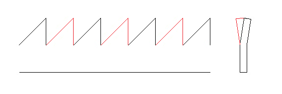 | アサリ付 アサリとは鋸刃の刃先を左右に押し広げた状態を言います。図1 アサリの付け方には何パターンかありますが、当方のアサリは一刃交代で左右に振り分けて付けております。 |