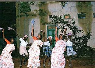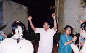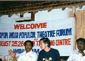 今回のインド訪問の最大の目的は「民衆劇」。それもインドの人と一緒に民衆劇を創ること。前日から4つのグループに分かれてディスカッションから始める。一人ひとりの生活のなから課題を出し合い、何を訴えるのか、カースト制度・政治・宗教・多国籍企業・近代化・食糧・飢餓・貧困・自殺・部落問題・性の問題・・・・・など、様々な話し合いが行われた。