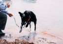 初めて水遊びをして周りにいた方々はチーズの姿を見て笑っていました。