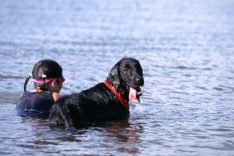 レトリバーの本能かしれませんが、何とか下手では有りますが、泳いでいました。