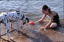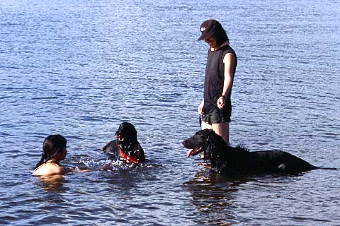愛犬ともども湖水浴を楽しみ、チーズは生まれて初泳ぎでもあり、溺れるか心配でしたが、