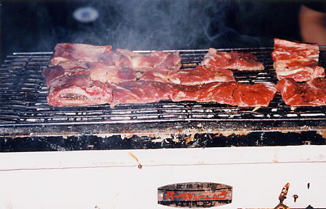 オリジナルイラスト入りジョッキーで乾杯に始まり、次から次へと食材を焼き、匂いで我慢