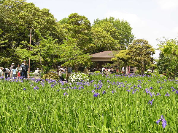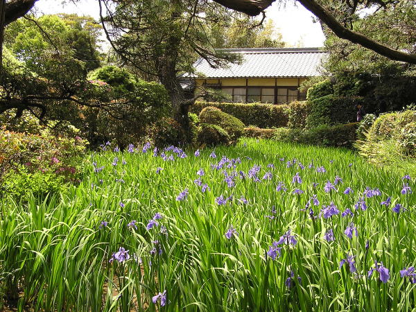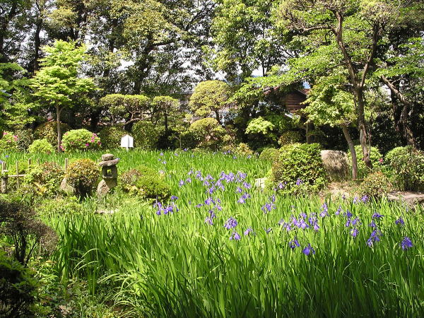 また、「かきつばた」の名勝地として有名です。庭園の面積約13,000u、16の池(5,000u)に約3万本の「かきつばた」が植えられています。