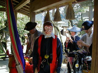 この神社に古くから伝わる「カッコ踊り」と称する県の無形文化財指定(昭和三十八年指定)指定を受けた神事踊りがあります。神事踊りは大太鼓四つをあやつり、衣装のはなやかさ、テソポのゆるやかさ、そして現在のカラー時代にマッチした踊りであり、全国に約六万有余といわれるカッコ踊りの中で神事踊りだけのもつ優雅さに魅了されるに違いない。
