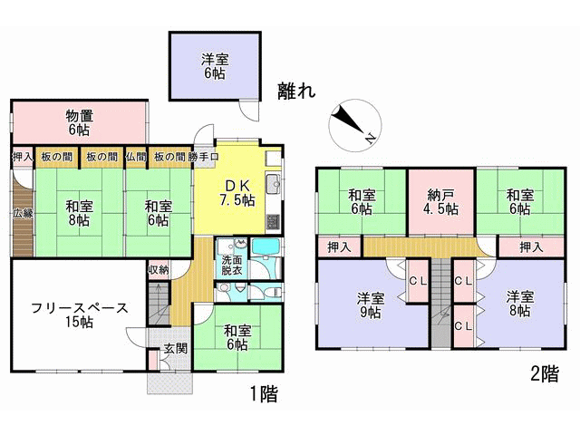 | 間取り | 7SDK+フリースペース+(離れ)1R |