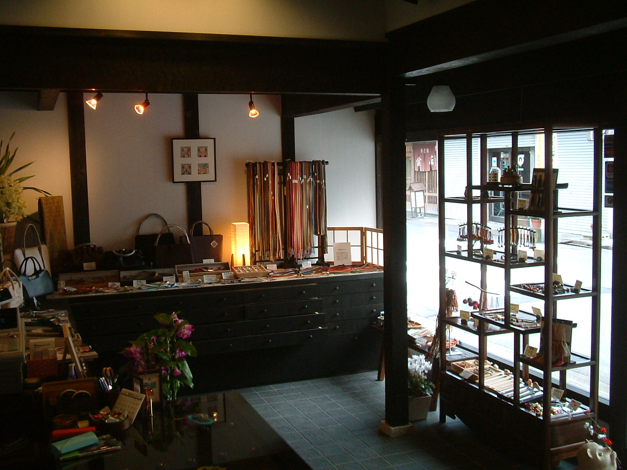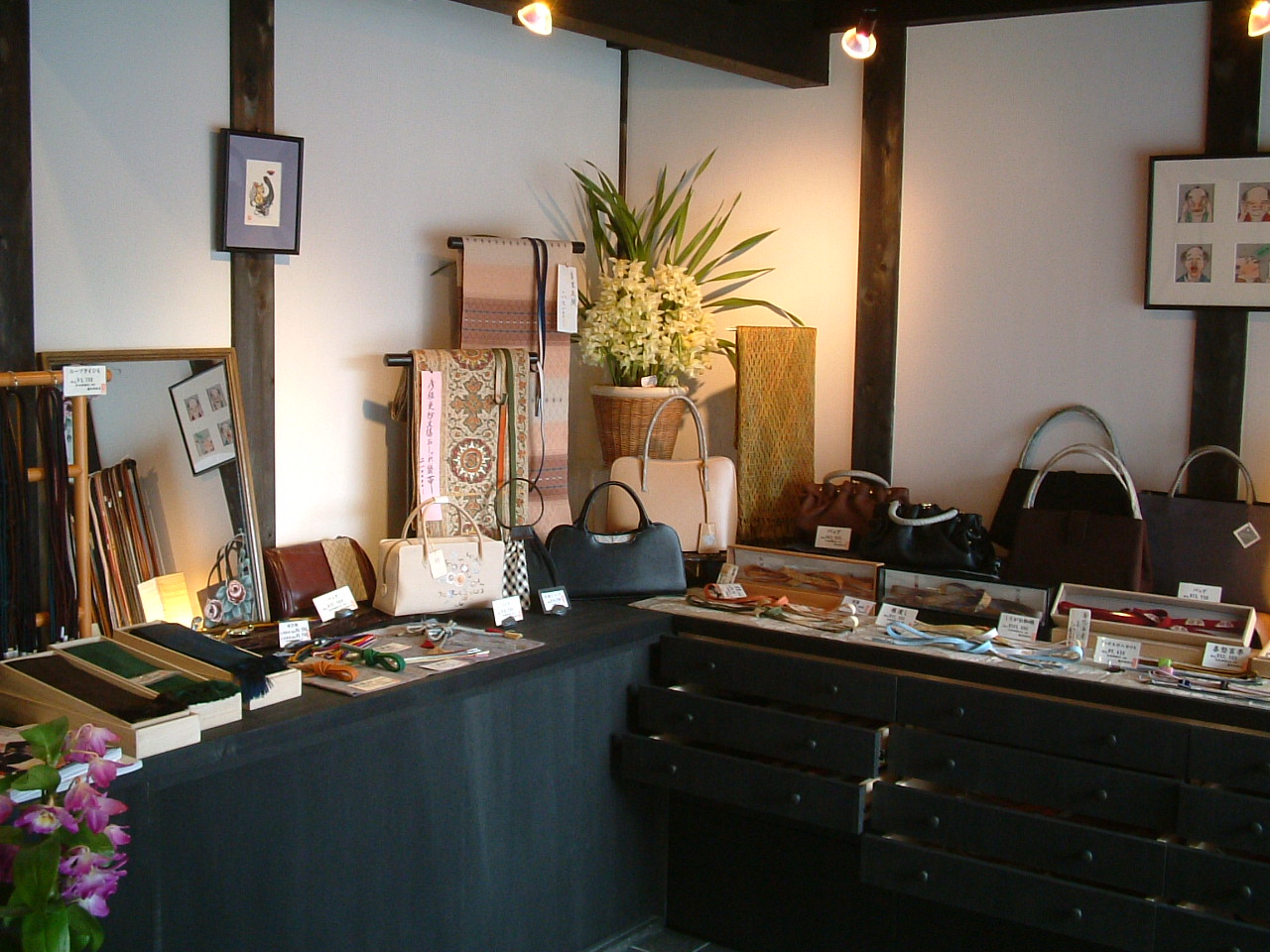 江戸時代中期の家屋を改装し、本物の伊賀くみひもの帯〆だけでなく、帯や帯揚げ、草履、バッグなど和装小物全般を幅広く紹介しています。