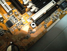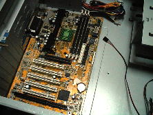 マザーボード取付け用のスペーサーを付けます。 ・取付け場所に注意しましょう。取付けを間違えるとショートの原因になります。 マザーボードをバックパネルにとスペーサーに合わせて取付板にのせます。 |