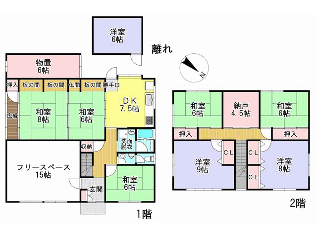 | 間取り | 7SDK+フリースペース+(離れ)1R |